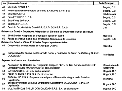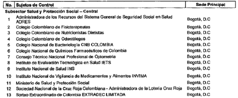 ARTÍCULO 13. CONTRALORÍA DELEGADA PARA EL SECTOR SALUD. La Contraloría Delegada para el Sector Salud será competente para ejercer la vigilancia y el control fiscal a los siguientes sujetos de control:
