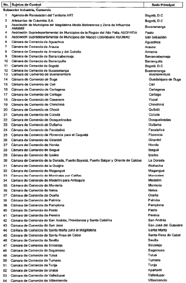 ARTÍCULO 3o. CONTRALORÍA DELEGADA PARA EL SECTOR COMERCIO Y DESARROLLO REGIONAL. La Contraloría Delegada para el Sector Comercio y Desarrollo Regional será competente para ejercer la vigilancia y el control fiscal a los siguientes sujetos de control: