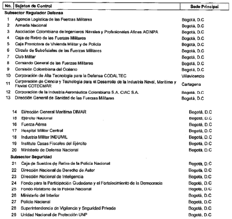 ARTÍCULO 5o. CONTRALORÍA PARA EL SECTOR DEFENSA Y SEGURIDAD. La Contraloría Delegada para el Sector Defensa y Seguridad será competente para ejercer la vigilancia y el control fiscal a los siguientes sujetos de control: