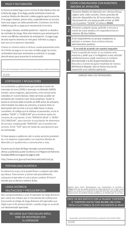 FORMATO DEL CONTRATO ÚNICO DE PRESTACIÓN DE SERVICIOS MÓVILES EN MODALIDAD POSPAGO Y CONDICIONES GENERALES PARA LA PRESTACIÓN DE ESTOS SERVICIOS EN MODALIDAD PREPAGO