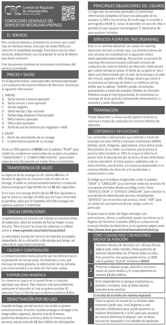 2. Modelo 2. Condiciones generales del servicio prepago.