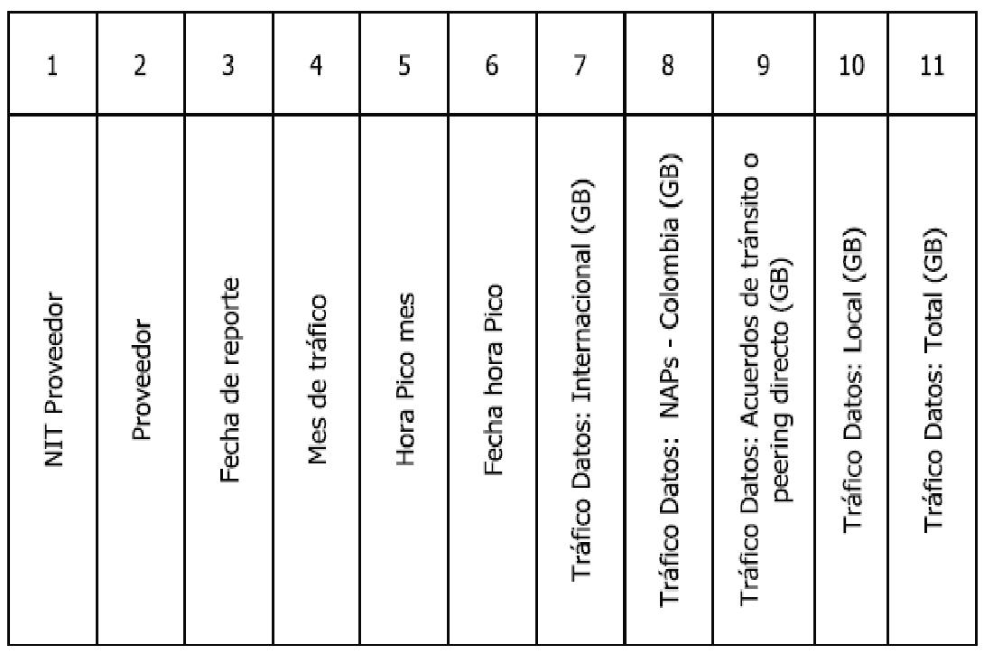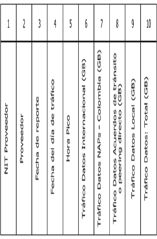 [4] FECHA DEL DÍA DEL TRÁFICO: Corresponde a la fecha del día en la que se cursó el tráfico de Internet que se está reportando en el presente Formato. Esta fecha deberá guardar el formato aaaa/mm/dd. Debe enviarse un dato de tráfico por cada día reportado. Por ejemplo, si se está haciendo el reporte del lunes, este debe contener tres filas para incluir el tráfico del viernes, del sábado y del domingo.