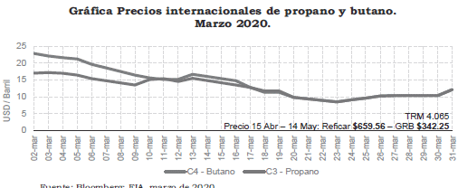 De acuerdo con lo anteriormente expuesto, la Comisión encuentra que, en el marco de la metodología de precio regulado para las fuentes de GLP comercializadas por Ecopetrol, las cuales cubren completamente la demanda nacional para el primer semestre de 2020 y representan alrededor del 85% en los próximos años, y ante la coyuntura actual de los precios internacionales del crudo y de sus derivados, la aplicación de las fórmulas previstas en los artículos 3o y 4o de la Resolución CREG 066 de 2007, y la referencia del costo de oportunidad al precio del Propano y del Butano NON-TET Mont Belvieu, puede generar que el precio regulado del GLP termine en niveles que conlleven a la afectación en la garantía y continuidad en el suministro de GLP para el servicio público domiciliario.
