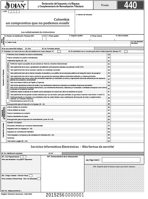 Por la cual se prescriben formularios para el cumplimiento de las obligaciones tributarias, correspondientes al año 2015.
