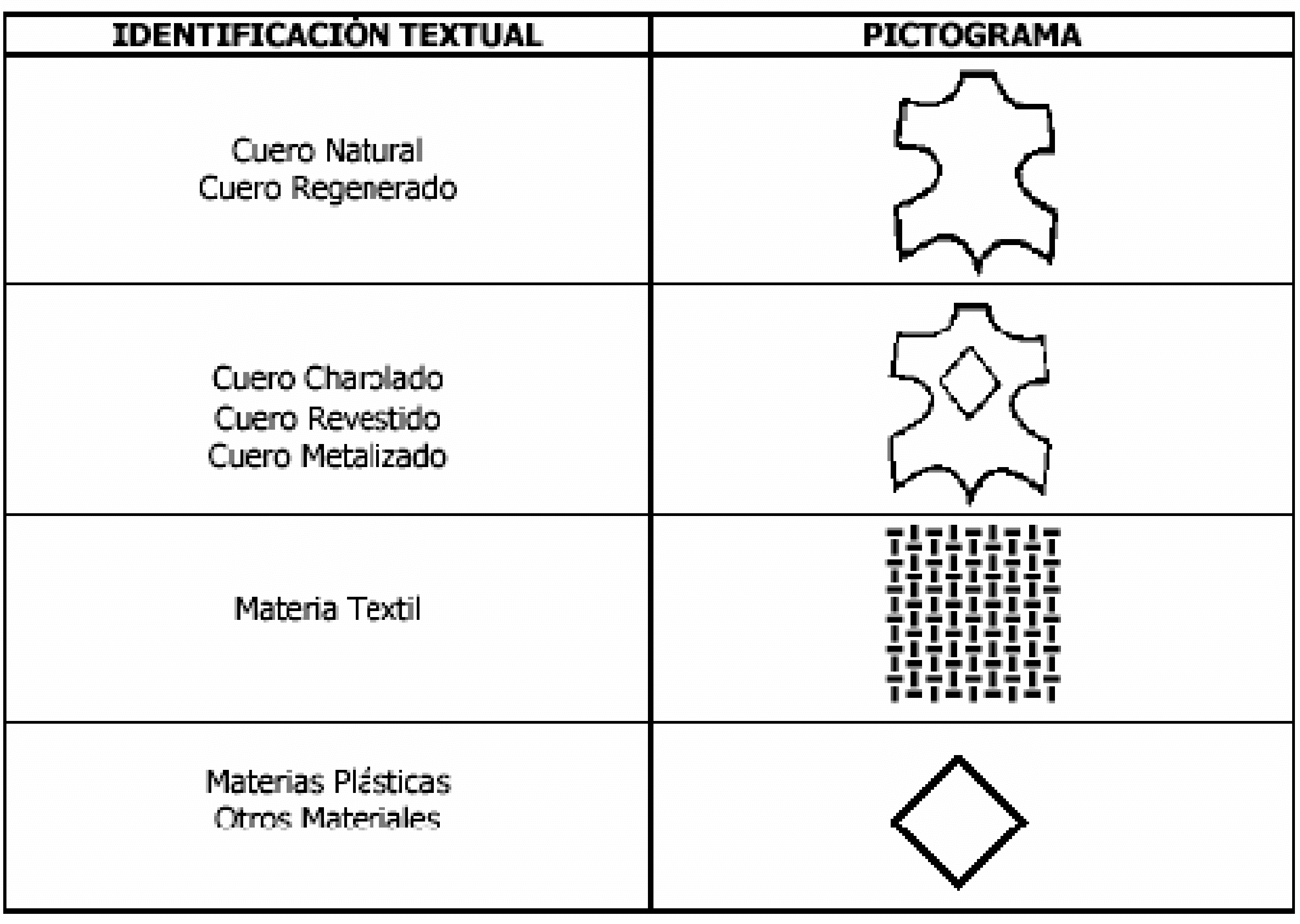 ii) La composición del calzado deberá indicarse con arreglo a las disposiciones del numeral v, mediante indicaciones textuales o el símbolo que designen de manera genérica o específica los materiales utilizados en la elaboración del calzado, de conformidad con las Figuras números 1 y 2 del anexo, siempre y cuando la forma de designación del material no se preste para inducir a error o engaño al consumidor;