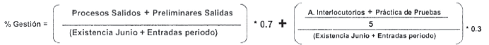 El 30% restante estará representado por los autos interlocutorios (admisorios de la parte civil, inhibitorios, cesaciones de procedimiento) y la práctica de pruebas (comisorios auxiliados, indagatorias, inspecciones judiciales, declaraciones y levantamiento de cadáveres),contrapuestos con la existencia de procesos al inicio del semestre más los entrados durante el lapso a evaluar; para obtener el porcentaje de gestión de cada uno de los funcionarios -jara un rendimiento mínimo de acuerdo a la tabla establecida en el artículo 15 de esta resolución, según la siguiente fórmula