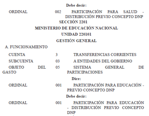Que los artículos 23 de la Ley 1940 de 2018 y del Decreto número 2467 de 2018, facultan al Ministerio de Hacienda y Crédito Público - Dirección General del Presupuesto Público Nacional, para que de oficio o a petición del jefe del órgano respectivo, a través de una resolución efectúe las aclaraciones y correcciones de leyenda necesarias, para enmendar los errores de transcripción y aritméticos que figuren en el Presupuesto General de la Nación para la vigencia fiscal de 2019;