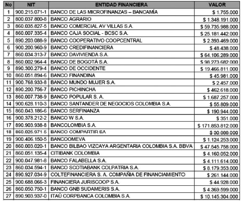 PARÁGRAFO. Los recursos serán consignados en la cuenta del Banco de la República que la entidad financiera indique en la cuenta de cobro.