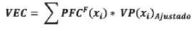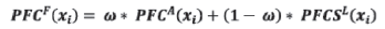 La PFCF(xi) corresponde a la suma ponderada de las siguientes probabilidades de cada proceso: