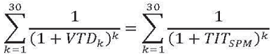 7. Se calcula una tasa equivalente o Tasa interna de Retorno al vector de tasas VTD resolviendo para TITSPM en la siguiente ecuación: