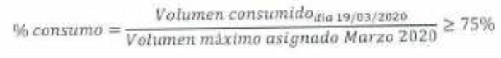 CRITERIO A: Este criterio se activare en caso de que el porcentaje de consumo del municipio al día 19 de marzo del 2020. sea mayor o igual a, 75% de su volumen máximo asignado: