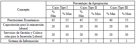 ARTÍCULO 6o. SUBCUENTAS DEL FOSFEC PARA GASTOS OPERATIVOS. Para la atención de los servicios a cargo del Fondo de Solidaridad de Fomento al Empleo y Protección al Cesante (Fosfec) y como gastos operativos en los términos del inciso 1 del parágrafo 3 del artículo 2.2.6.1.3.14 del Decreto 1072 de 2015, las Cajas de Compensación Familiar apropiarán los recursos que resulten de la diferencia entre el monto recaudado para la financiación del Fondo de Solidaridad de Fomento al Empleo y Protección al Cesante (Fosfec) (es decir el total de fuentes) y la apropiación para los gastos de administración para la vigencia 2021, determinando sus apropiaciones entre los siguientes rangos de porcentajes: