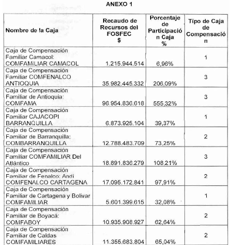 La clasificación por Caja de Compensación Familiar se presenta en el Anexo 1 de esta Resolución.