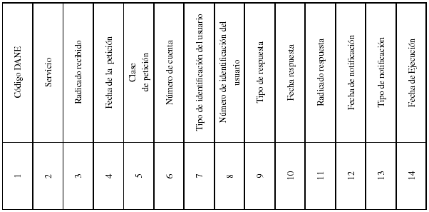 2. Servicio. Corresponde al servicio al cual ertenece la etición, de acuerdo con la siguiente tabla:
