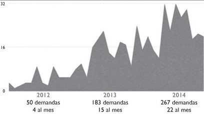 Sexto. Que la más reciente valoración empírica de la actividad judicial de la Superintendencia da cuenta de un marcado incremento en el número de demandas societarias presentadas ante la Delegatura para Procedimientos Mercantiles. Según puede apreciarse en la Tabla número 1, el número total de demandas societarias presentadas ante la entidad pasó de 50 en el año 2012 a 183 en el 2013. Esta tendencia se mantuvo durante el año 2014, en el cual se radicaron 267 nuevas demandas. Es decir que, en tan sólo dos años de funcionamiento, el número de demandas de naturaleza societaria formuladas ante la Delegatura para Procedimientos Mercantiles se incrementó en más de un 500%.