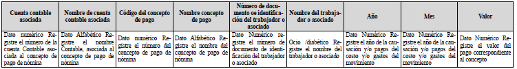 ii) Los empleadores y/o cooperativas que no llevan en la contabilidad el detalle de los pagos a los trabajadores y/o asociados deben remitir la información del módulo de nómina, el cual debe contener la siguiente estructura: