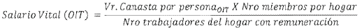 Que, para, el cálculo del salario vital, la OIT plantea la siguiente ecuación:
