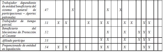 | 47 | Trabajador dependiente de entidad beneficiaria del sistema general de participaciones – Aportes patronales |