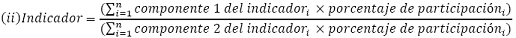 La siguiente es la fórmula aplicable para los indicadores que son índices en la opción 1: