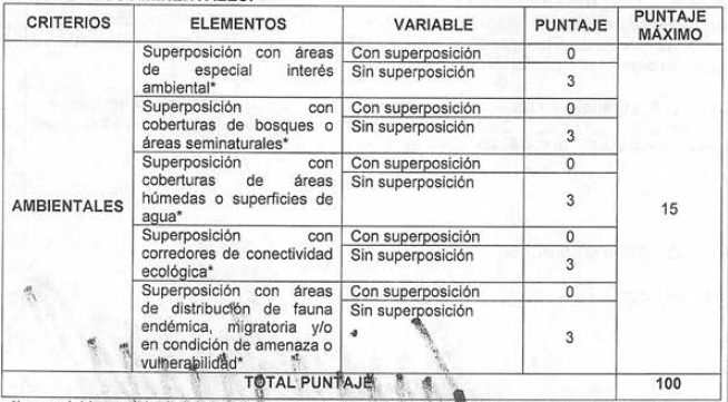 *Las variables pueden ser sumadas, es decir, si un corredor conecta con una via primaria, secundaria y terciaria y con via fluvial y área en el elemento vial, sumada 10 puntos. Los elementos que no cuentan con este simbolo*, no sumara sus puntuaciones