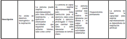 Tabla 2. Modelo genérico para las tablas de calificación de las deficiencias