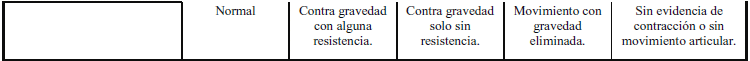 | Valoración de la deficiencia (%) | 0 | Mínima % | Moderada % | Severa % | Muy severa % |