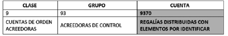 1. El valor de las regalías distribuidas con elementos por identificar.