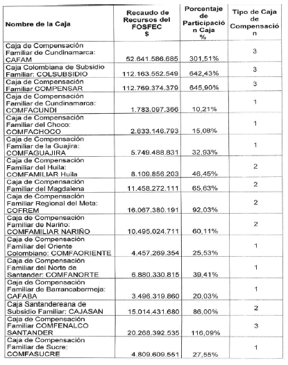La clasificación por Caja de Compensación Familiar se presenta en el Anexo 1 de esta Resolución.